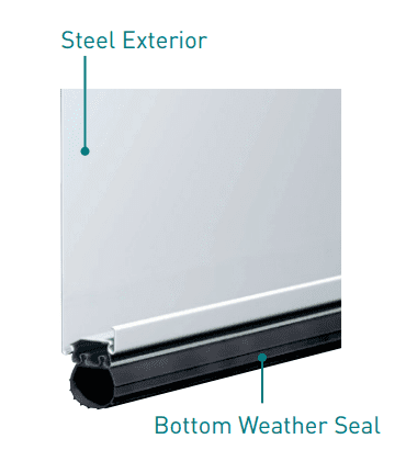 These doors typically have a strong steel exterior & a quality bottom seal to keep the weather & bugs out.  They’re “hollow” in that they are only a stamped sheet of steel hinged together to form the door.  They do come with struts that run along the inside of the door for added support, but these doors will have zero insulation & not quite carry the same durability as higher options.  Many customers still get 10+ years of quality operation out of these types of doors.